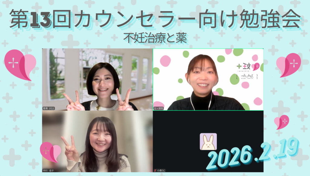 2026年2月19日、nintaristである中川佳子さんを講師にお招きし、nintarist向け勉強会を行いました。 テーマ:「不妊治療と薬」講師:中川佳子さん(不妊カウンセラー、薬剤師) 妊娠や不妊の基礎知識 不妊治療の基礎知識 不妊治療でつかう薬の種類や特徴 などを学びました。 今後もnintarist同士の勉強会を定期的に開催し、みなさまに「安心して相談できる場所」を提供できるよう努めてまいります。 報告する コメント この記事へのコメントはありません。 コメントするためには、 ログイン してください。 関連記事一覧 2025年8月22日、nintarist交流会(第16回)を行いました 2024年11月27日、妊+のカウンセラーさん向け勉強会(第1回)を行いました。 2025年8月28日、妊+のカウンセラーさん向け勉強会(第9回)を行いました! 2025年3月28日、妊+のカウンセラーさん向け交流会(第12回)を行いました 2025年2月22日、妊+のカウンセラーさん向け勉強会(第4回)を行いました! 妊+第8回カウンセラー交流会を行いました! 2025年11月25日、nintarist向け勉強会(第12回)を行いました! 2025年3月31日、妊+のカウンセラーさん向け勉強会(第5回)を行いました!
